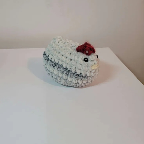 This cozy handmade cutie is around 2-3 inches tall, crafted with extra-plush yarn in soft whites and gentle grays, topped with a tiny red comb that brings it all to life. Whether you're a chicken lover, a fan of cozy décor, or just need a little joy on your desk or shelf, Baby Chonky Chicken is here to bring smiles.